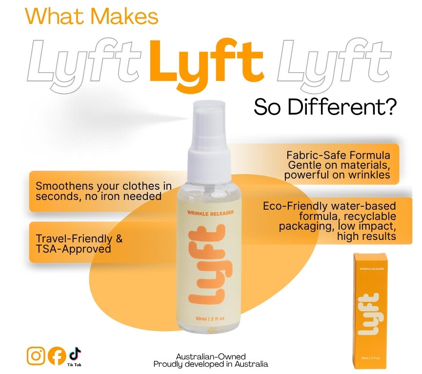 No wrinkles. No Stress. Just Spray. Lyft and GO!